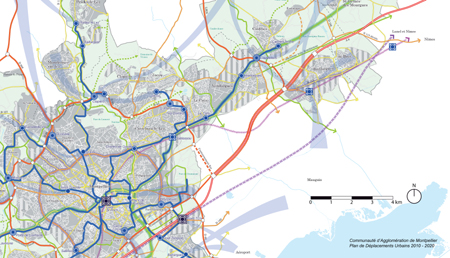 élargissement du réseau de tramway montpelliérain : l’extension de la ligne 2 du tramway jusqu’à Castries permettra ainsi un accés sans voiture direct et facile à la métropole. - travaux prévus au PDU pour 2020 -