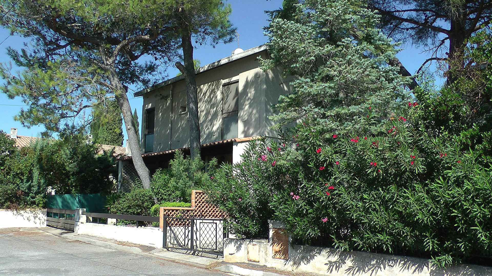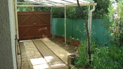 Grande terrasse couverte et ombragée donnant sur un agréable jardin arboré, avec appenti et abri-voiture. Emplacement très calme sur une placette en impasse.